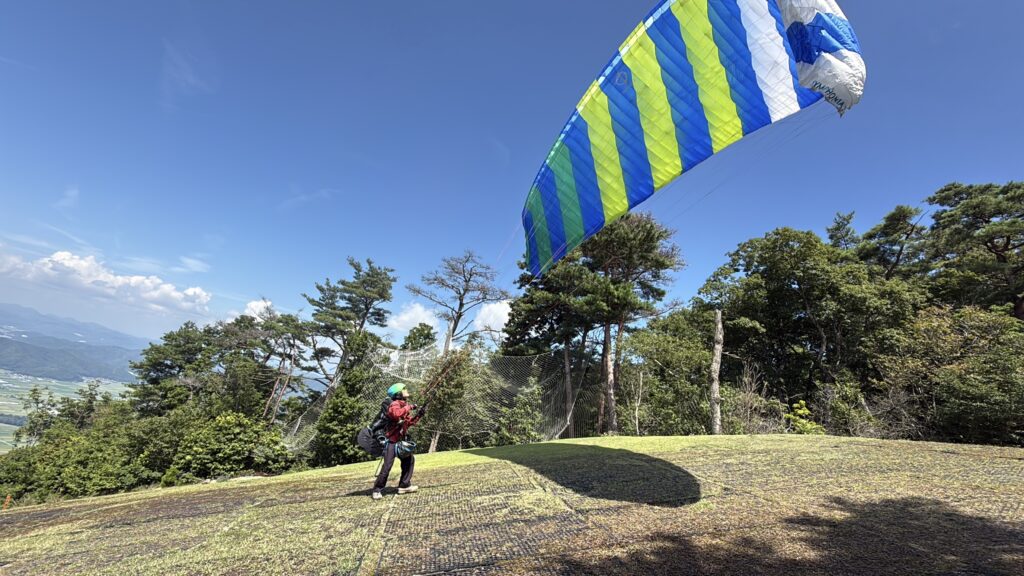 連休明けのためか、今日のフライトは常連さんと2人。スタッフもたっぷり時間をいただき、じっくり道具の調整。ちょうどサーマルが出てきたタイミングにテイクオフし、看板犬(?)ぐりんとも一緒に空を楽しむことができました🐶🪂