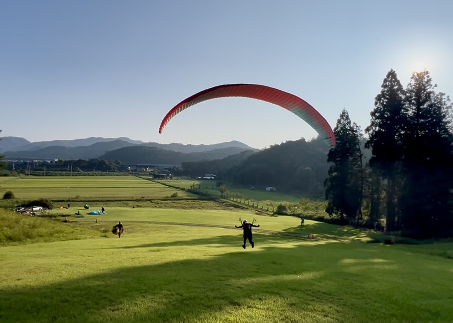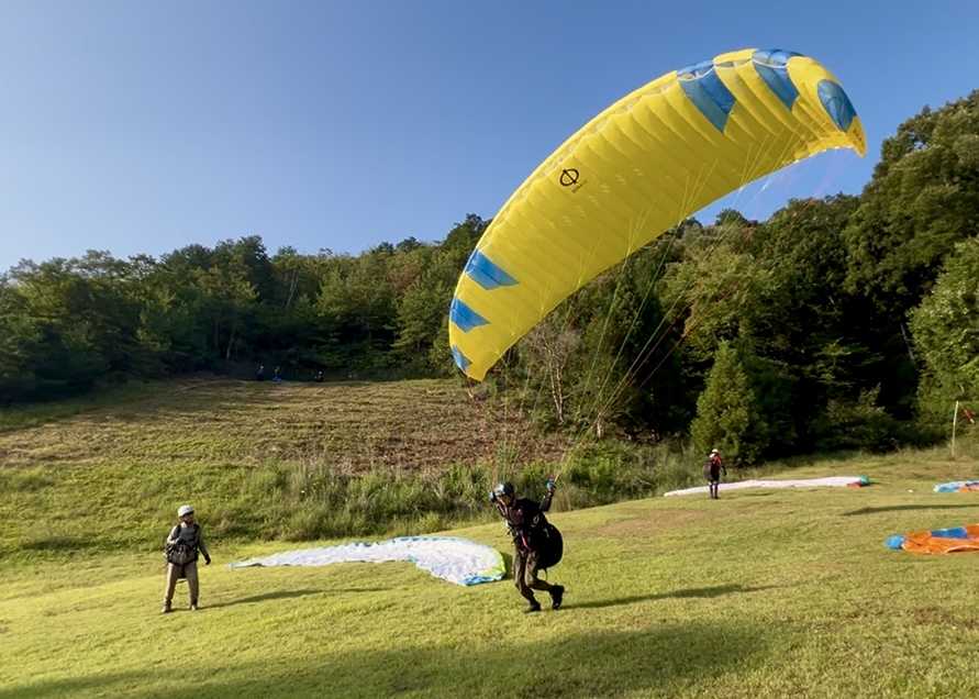 今日も朝早くからみっちり朝練!久々の人も、入校したての方も、ベテランさんも斜面の基礎練から30mショートフライトまでたくさんトライできました。