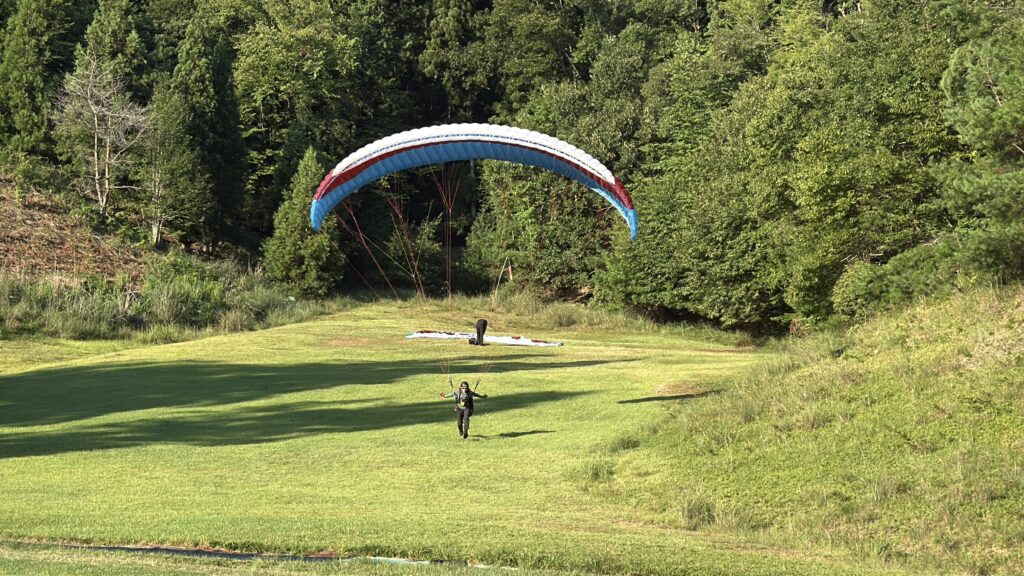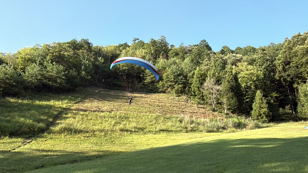 パラパークは8m/sほど吹いていましたが、9:00過ぎに風が止んでスクールさんは2本飛べました。強くなる前にテイクオフしたパイロットの方は長時間コースで、強くなる前にセイフティランディングでした!