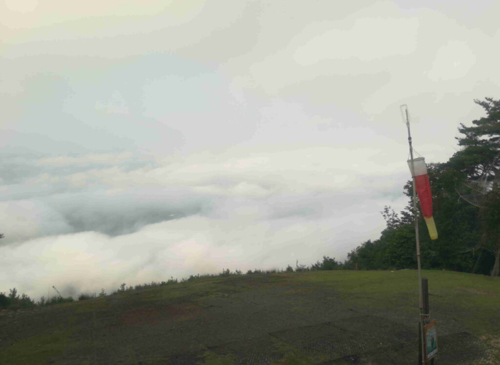 今日も霧が発生、パラパークテイクオフ場ライブカメラでは雲海が見えました。早朝は涼しくなったものの、動くと汗が吹き出ます。ライズアップ練習をしてパラパークに向かいました。