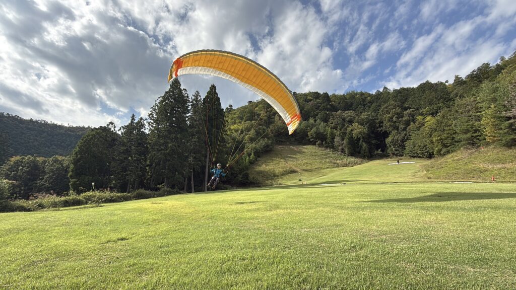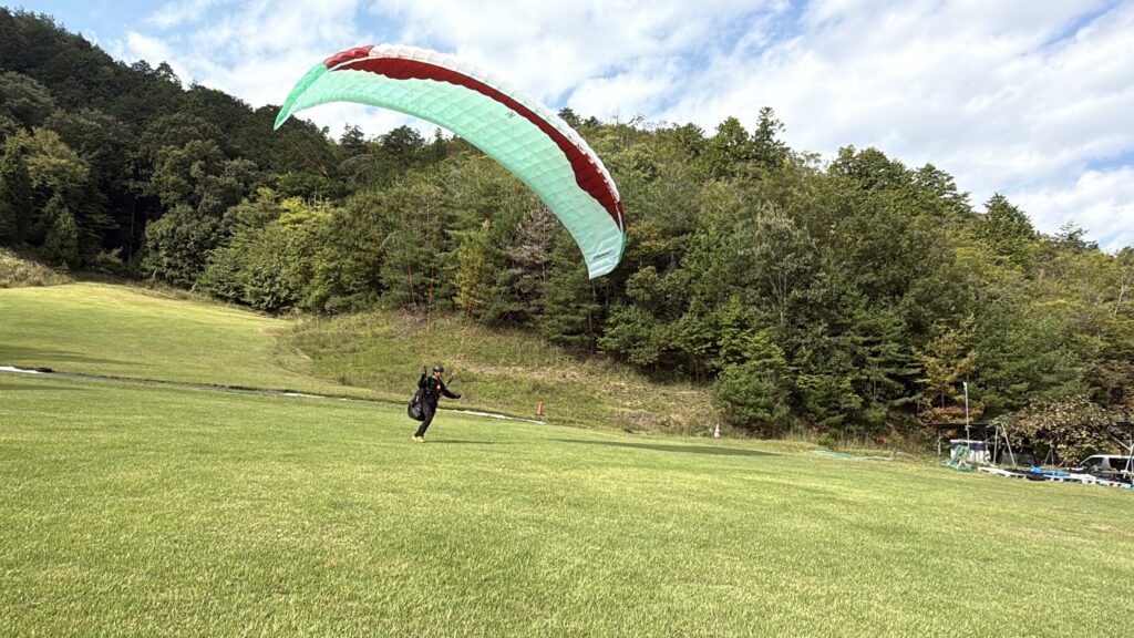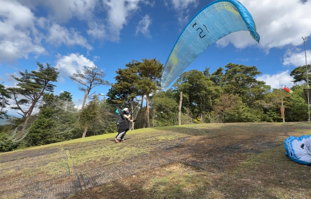 パラパークは良い風で3名さんはテイクオフできましたが、風が急変。北風が強めになって無事ランディング。タイミングをみてテイクオフしたお二人さんは野外ランディングでセイフティでした。