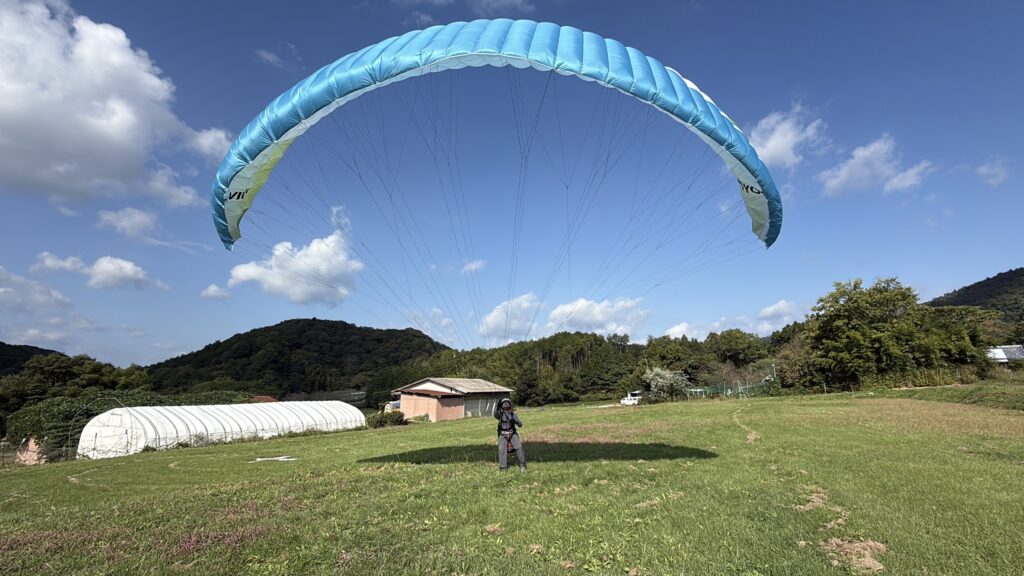 上空は強そうでしたが、テイクオフの高さからランディング場までは逆転層の影響で弱めでしたので、飛べました。勉強になる風でした。その後、風が吹いてきたのでリバース練習して終了となりました。