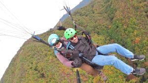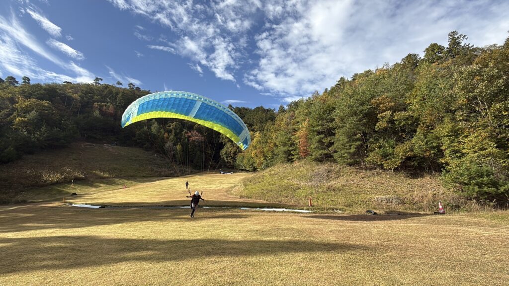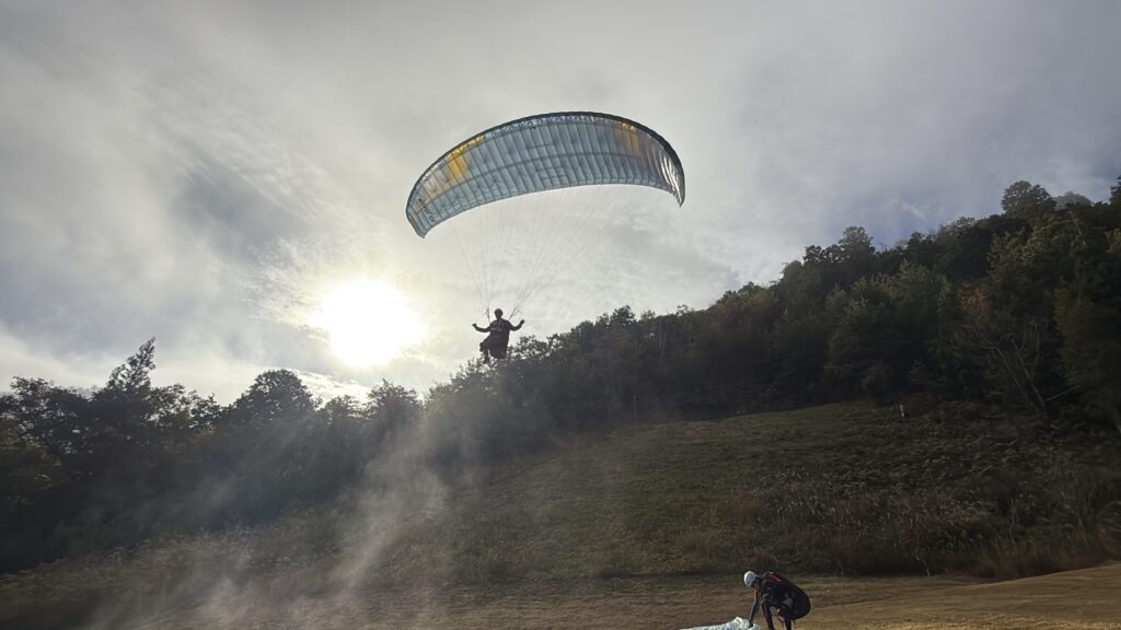パラパークは霧が消えてすぐは荒れていました。2本目以降も東の影響で乱れはありましたが、後半になるにつれて良い感じの風で最多4本飛べました。上昇気流も少しあってひとり勝ちのエキスパートさんがいたり、タンデムさんも全員無事飛べたり、紅葉も良い感じでよかったです♪