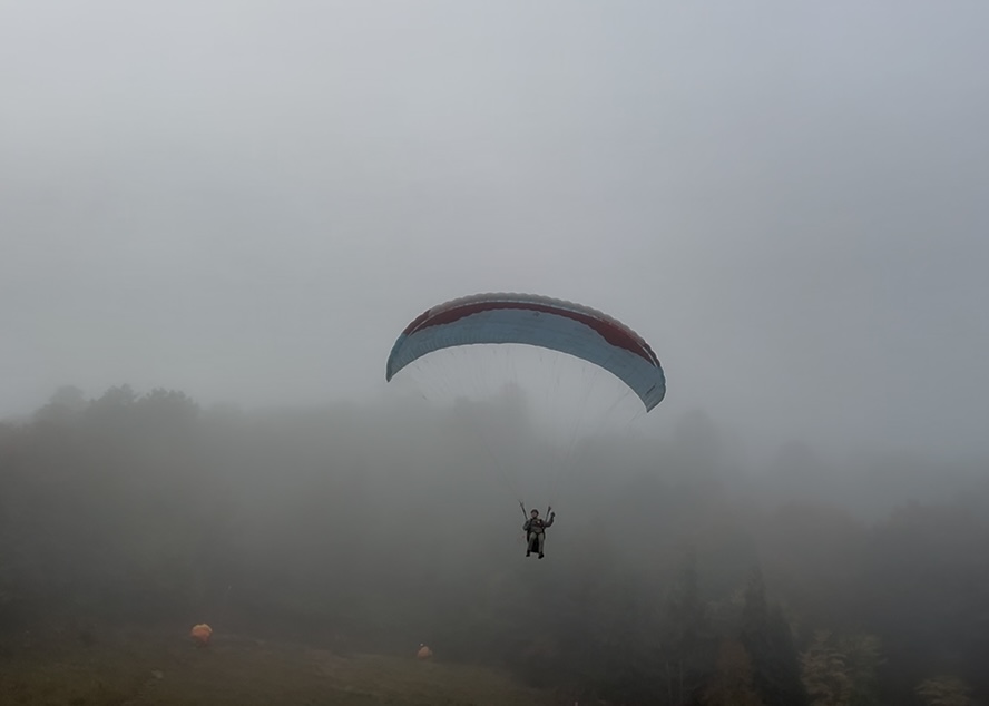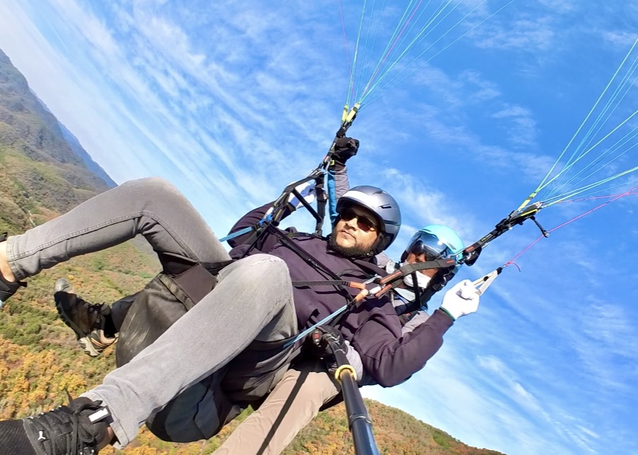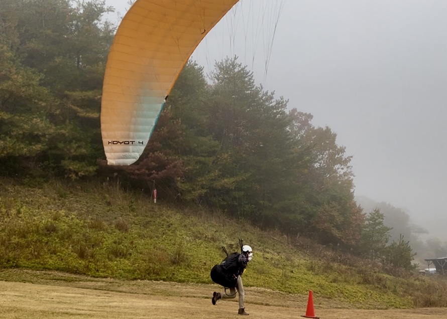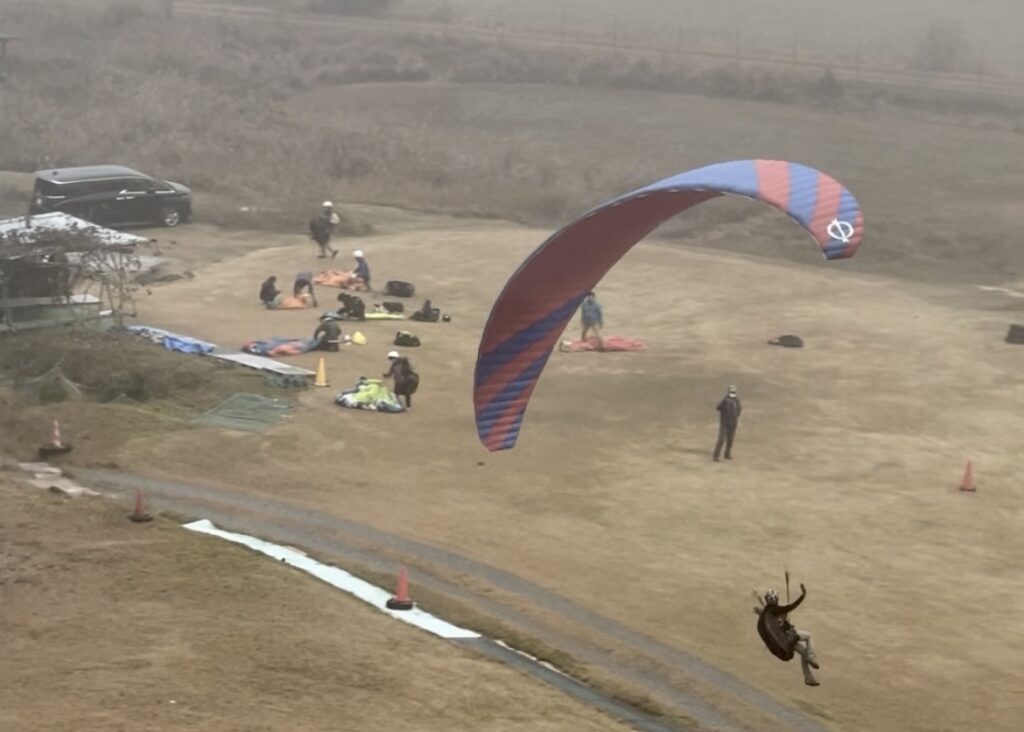 パラパークは一本目、上がってすぐはまだ雲の上。霧が晴れるのを待ち、どんどんテイクオフ!風向きも良く、初パラパークの方もフライト大成功♪ 実技テストも合格者が出ました✨