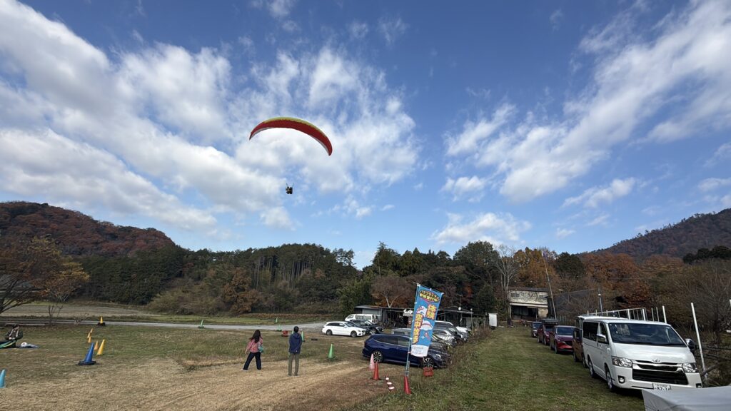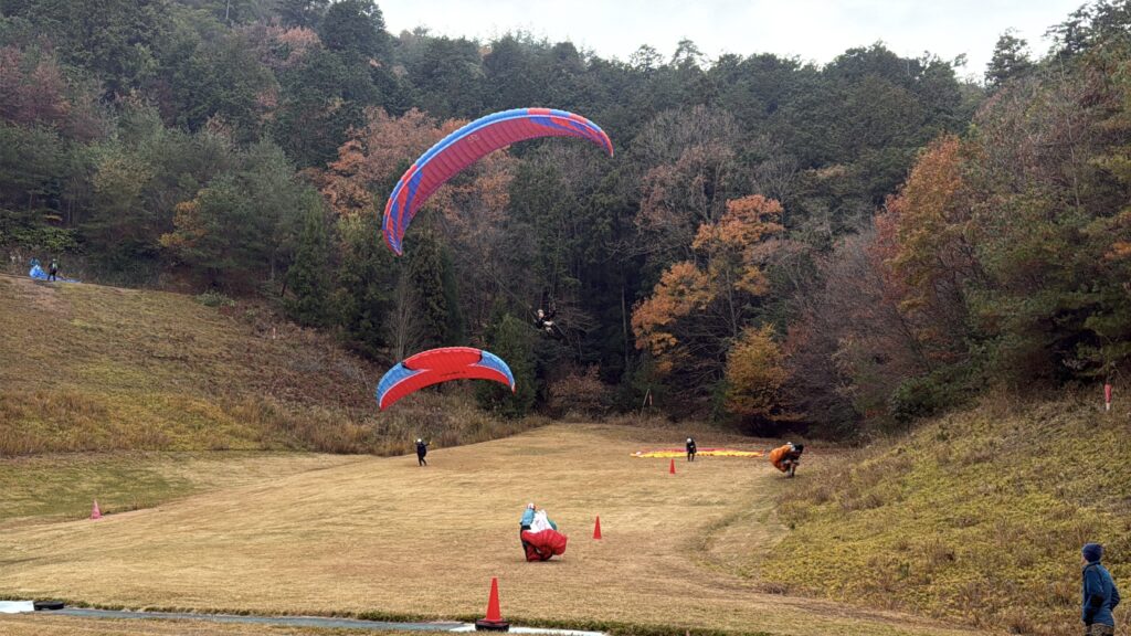 パラパークは横風がやや強い時があり、スクールさんは難しい風でしたが1〜2本飛べました。上級者の方でタイミングが良かった方は上昇気流に乗れました!