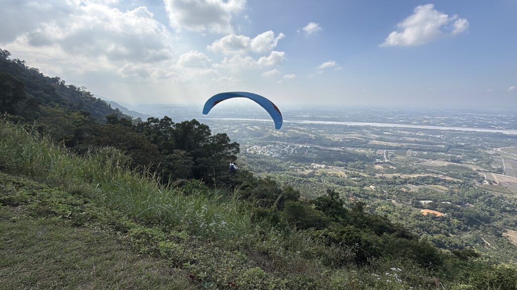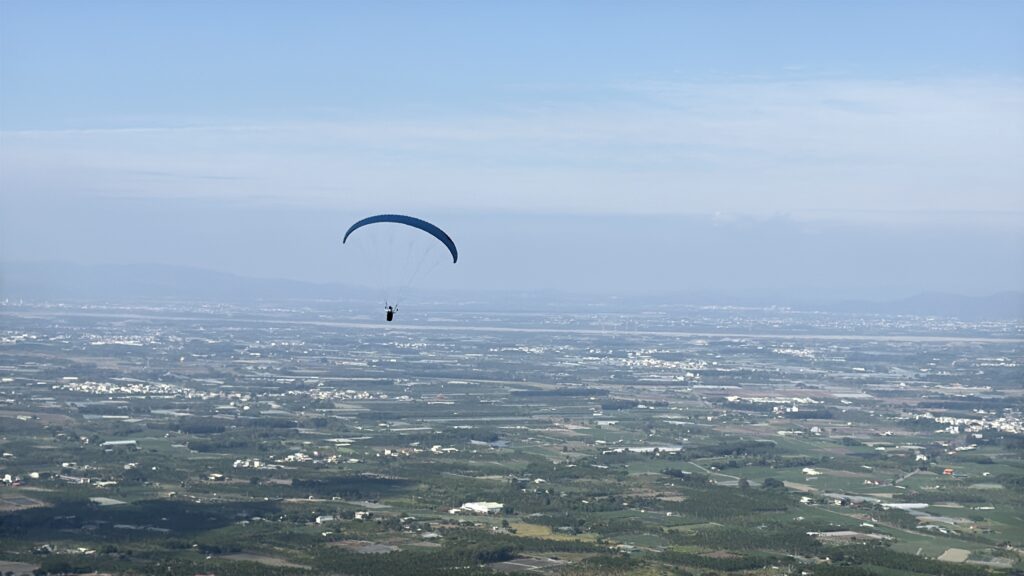 雲が発達しすぎて上昇帯は雲の吸い上げっぽい感じ…。高い高度の方は上がるのですが、次のパイロットがテイクオフしても激渋のコンディション。夕方まで待っても上昇成分は乏しく、穏やかな飛び納め、2025年の締めのフライトとなりました。
