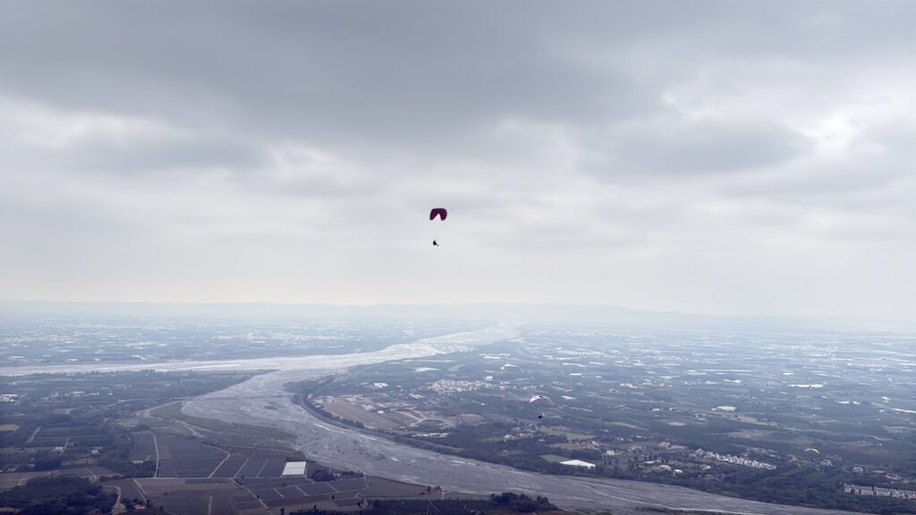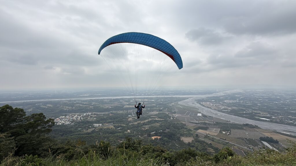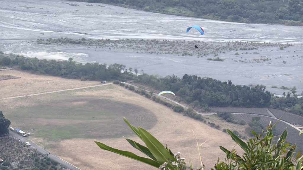 やや雲り空の朝。テイクオフでは穏やかな向かい風が吹いていました。ぶっ飛び…そう諦め感漂う天気でもソアリングできるのが、このエリア台湾サイチャエリア。渋くても粘る練習ができました。ひとりを除き他の方はビッグフライトとはいきませんが、弱い上昇気流にしがみつく練習ができました。ビッグフライトをされた方のログを見ると正確に同じ円を描くセンタリングができる技術が必要なことがわかりました。3〜5本、穏やかに飛べて大満足でした♪