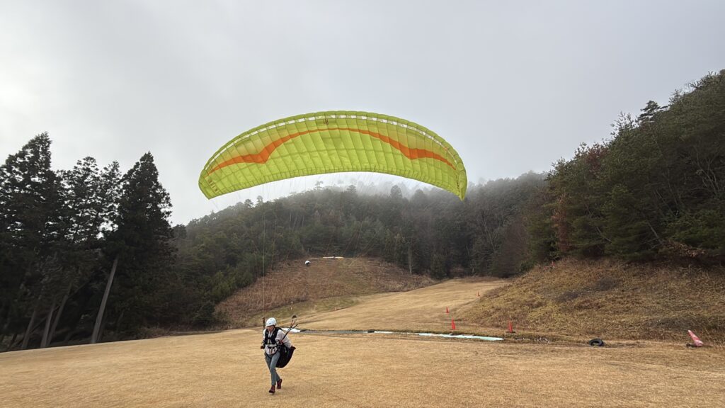 パラパークオープンの頃には霧は消滅してすぐにフライト開始。一本目は穏やか、2本目はサーマルがあり、3本目は再び穏やかに飛べました。