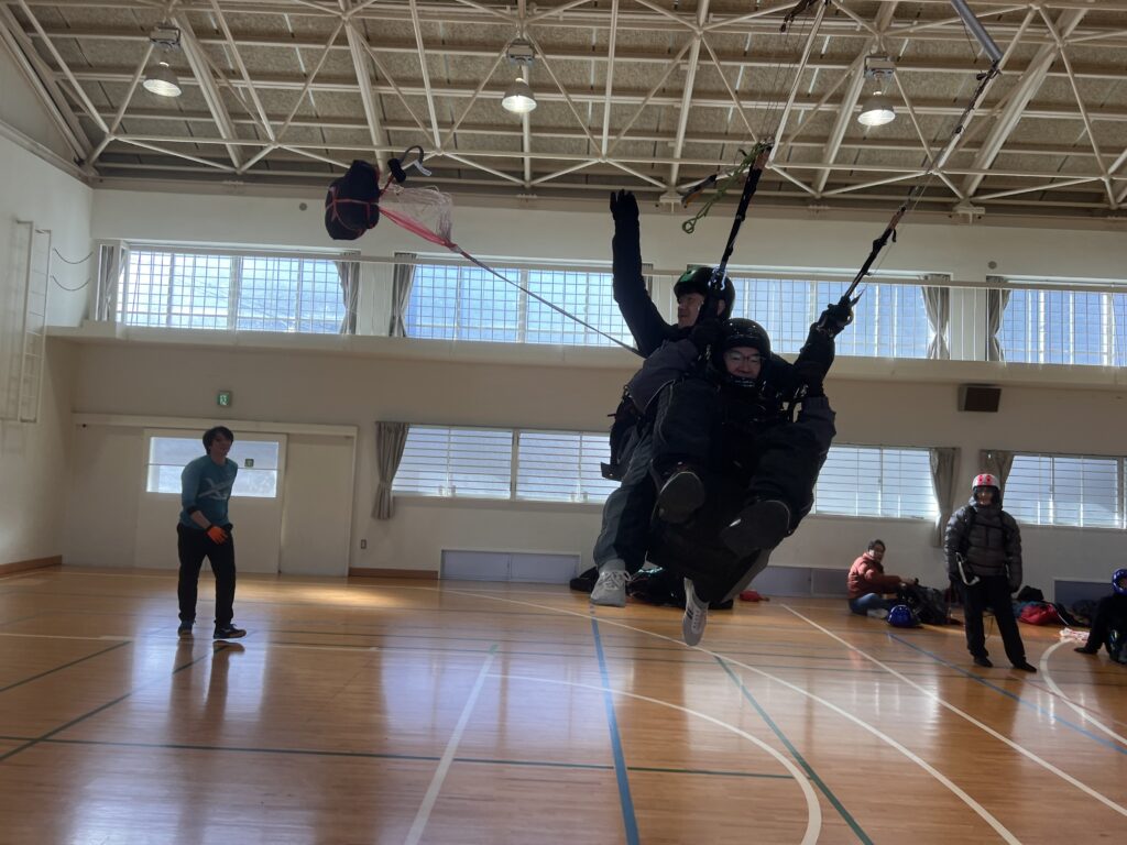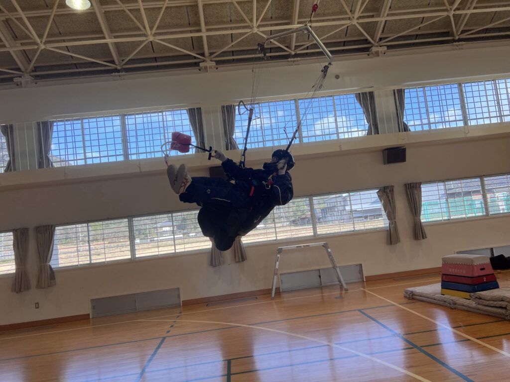 午後からはレスキューパラシュートシミュレーション。8名のご参加の方が3回投げ五接地転倒法の練習ができました。
