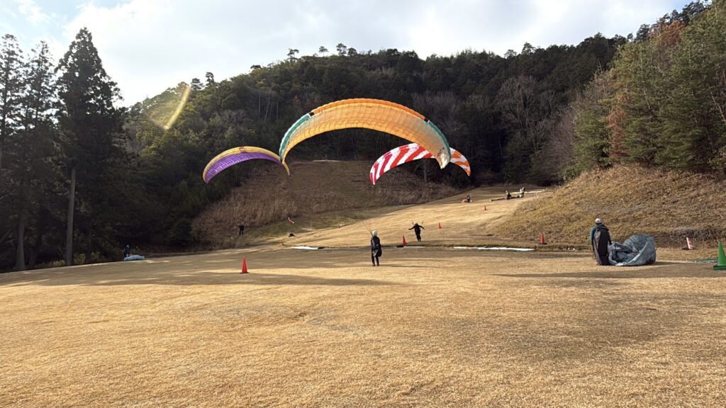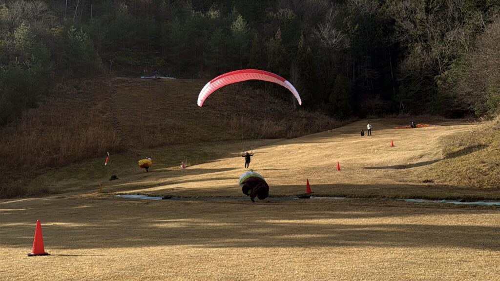 風が強くなってからは上級者の方々はリバースのグラハン練習。いっぱいパラグライダーが広がって良い感じ。スクールさんも新しいことにチャレンジできて、豊富な内容で練習できました。