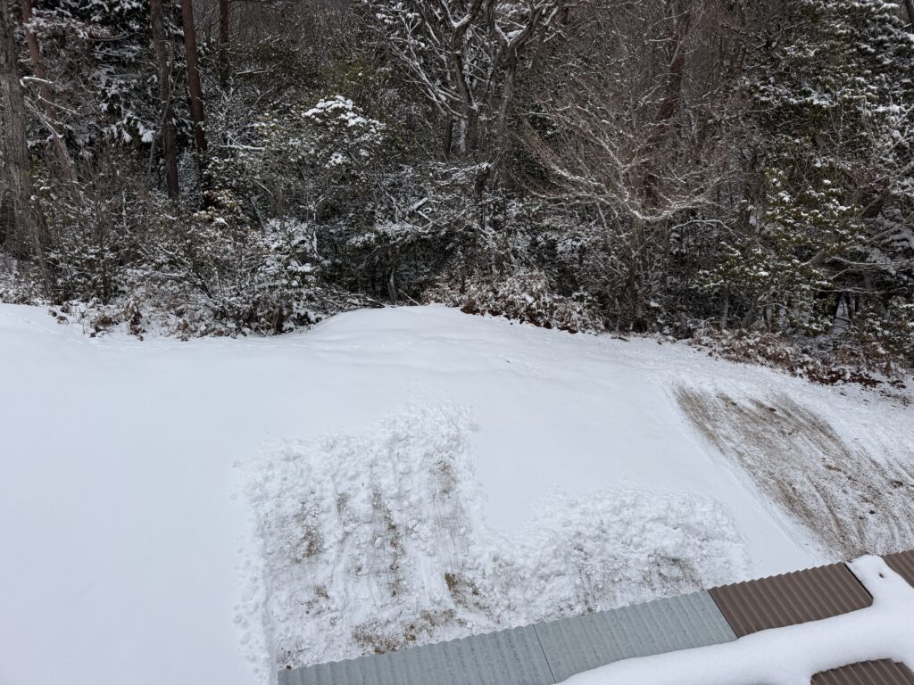 本日雪かき。八木エリアもパラパークもまだ雪が残っています。