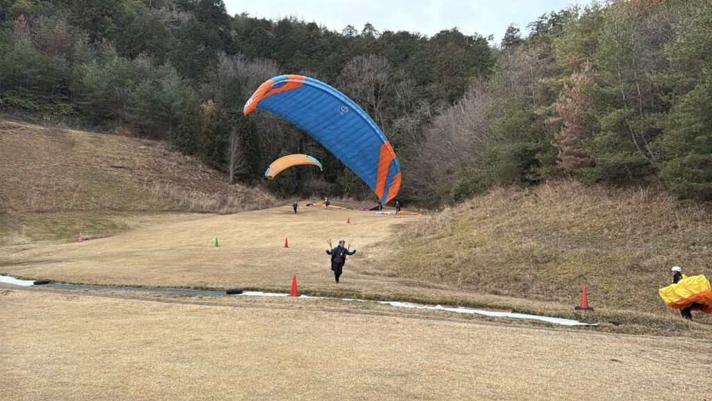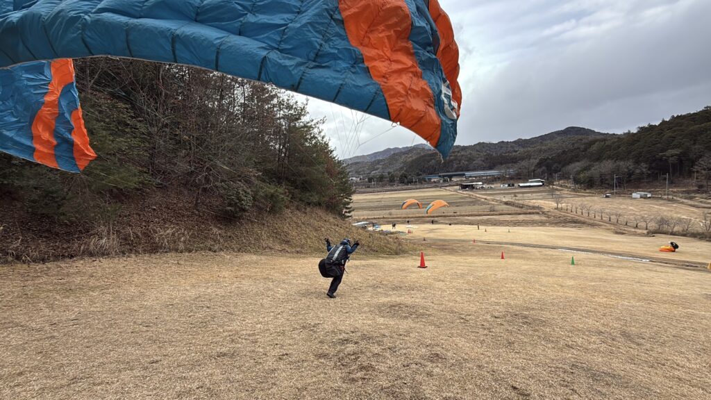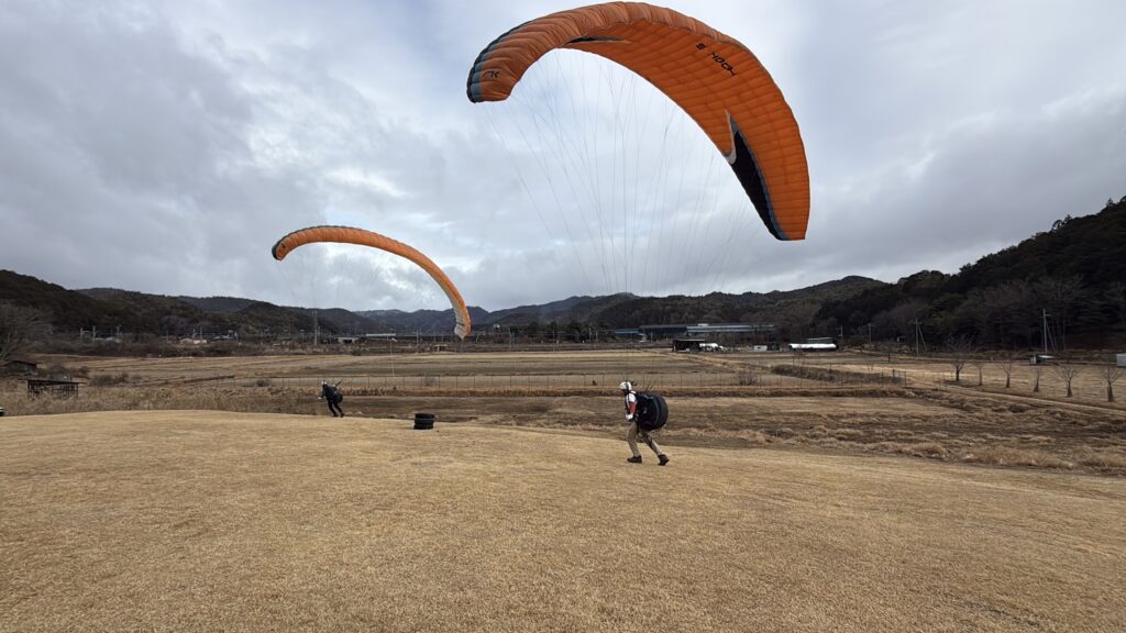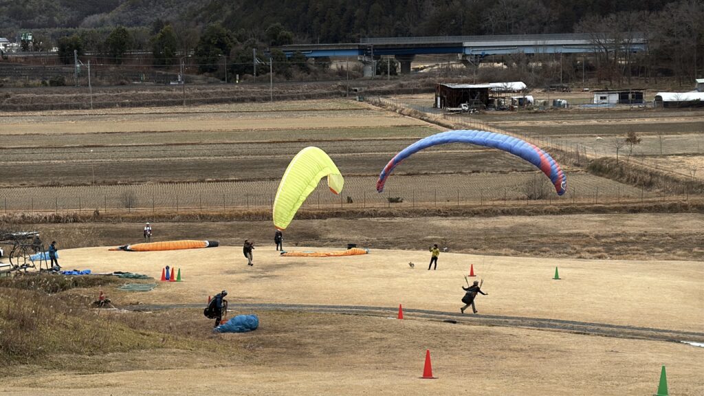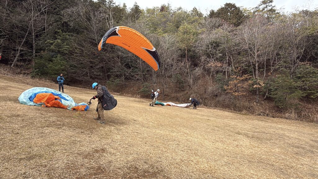 朝から少し向かい風っぽいと思っていましたが、上級者の方が30mから飛んで怪しい感じでしたので、地上練習を集中的に行いました。予定した200mはハイクアップ&ハイクダウンでしたが、余裕のご様子でした。時々30mから吹き下ろす風もありましたが、練習はお昼まで行い、お疲れ様解散となりました。