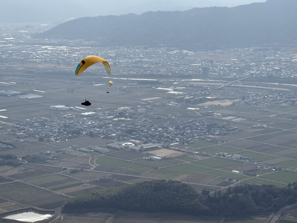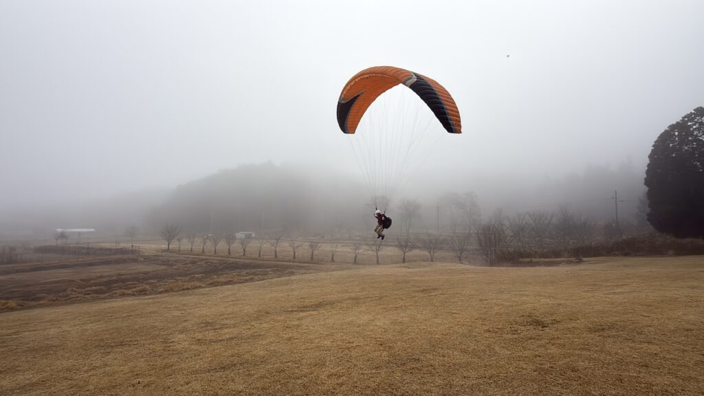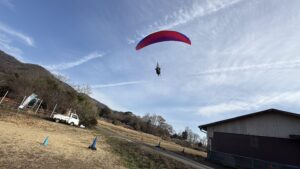 パラパークは第一便目から風が乱れ気味でした。一本飛んで動画の勉強をして、夕方まで待って飛べました。