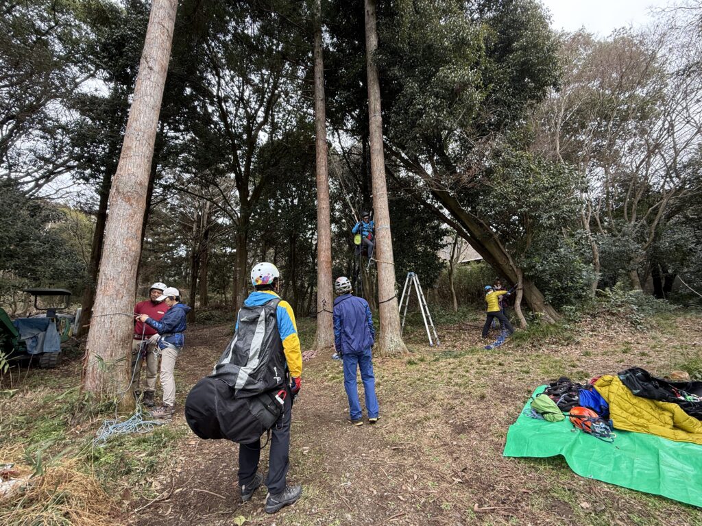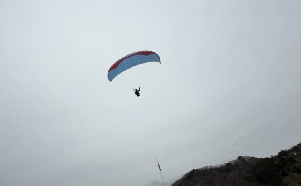 パラパークは南東強め・・・。すぐに飛べそうにないためツリーラン時の練習を行いました。13時過ぎに飛べそうな風になってフライト開始。穏やかに1〜2本飛べました♪
