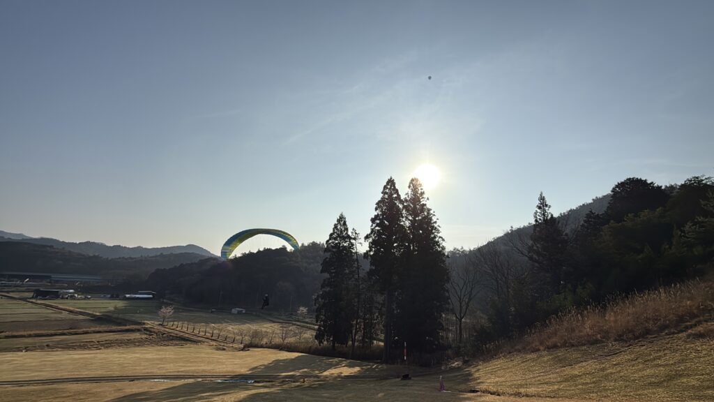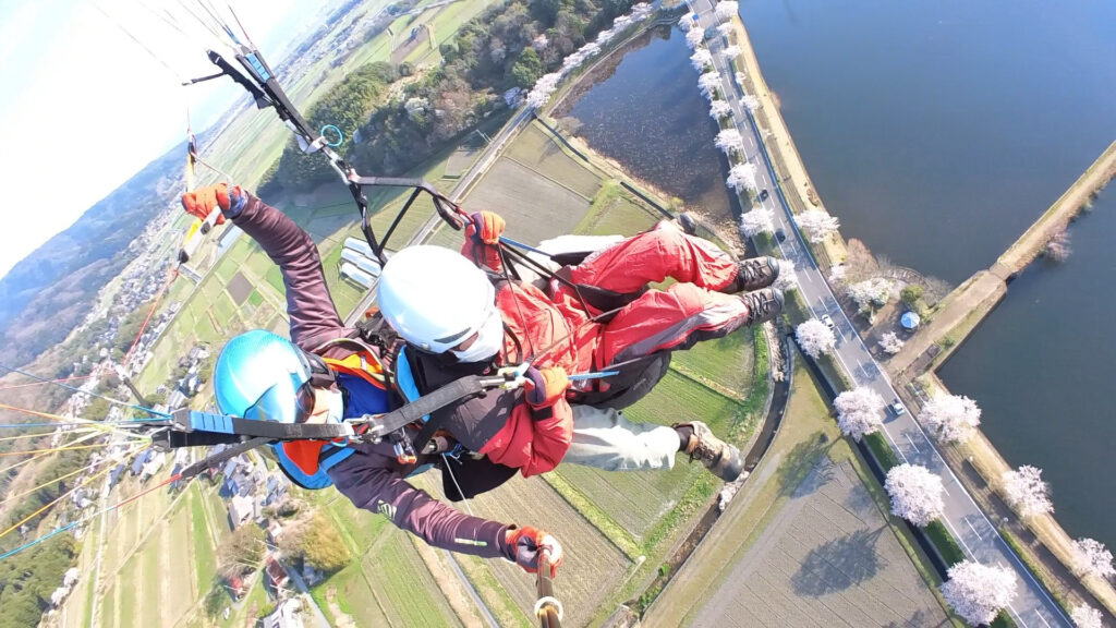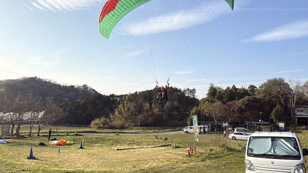 パラパークは穏やかな風の間に2本飛んでスクールさんは休憩。ランチ後は木登り練習ができました。パイロットの方は1700m上げて対岸の山に取り付くなどクロスカントリー日和。夕方にパラグライダー卒業されたメンバーさんとタンデムフライトができました♪桜が満開できれいでした♪