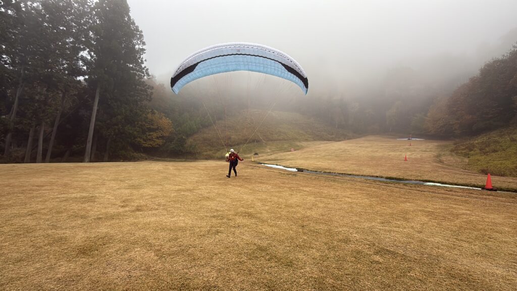 朝はやはり霧。今日は特に濃かったです。朝から初心者の方からベテランのパイロットさんまでお越しいただき、基礎練習はもちろん、クリスマスカップに向けての練習も盛り上がりました! パラパークは一本目、上がってすぐはまだ雲の上。霧が晴れるのを待ち...