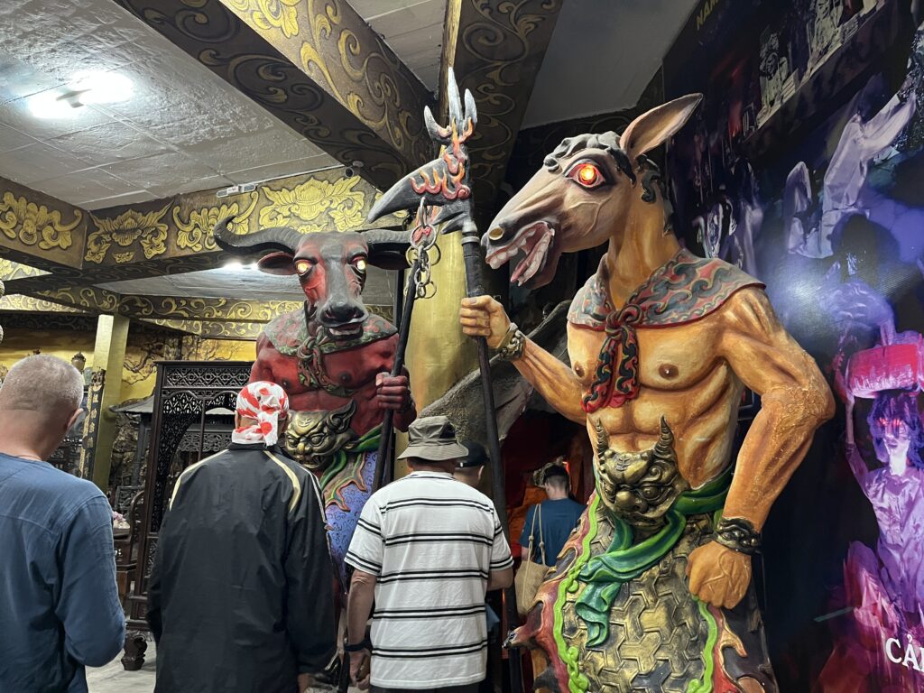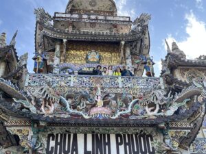 ホテルを8時にチェックアウトしてダラットで一番有名なリンフォック寺(別名モザイク寺)へ小一時間のプチ観光、とにかくド派手なお寺で観光客もたくさん訪れていました。天国と地獄のエリアに分かれていて階段で上がると全体の景色が見渡せます。地獄の通路はまるで迫力のあるお化け屋敷そのもの、流れる音声がベトナム語で理解出来なくて良かったです。