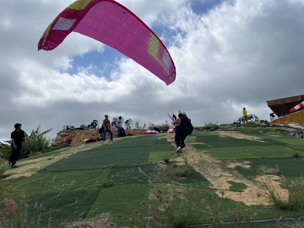 朝食後、8時集合でニャチャンエリアへ30分ほど移動、入山後にランディング注意事項を聞いてランクルでテイクオフへ。想像以上のオフロード、小川のような場所も渡ったり、土の急斜面を上がったり…30分かけて頭をぶつけたりしながらの海抜520mまでの道のり。