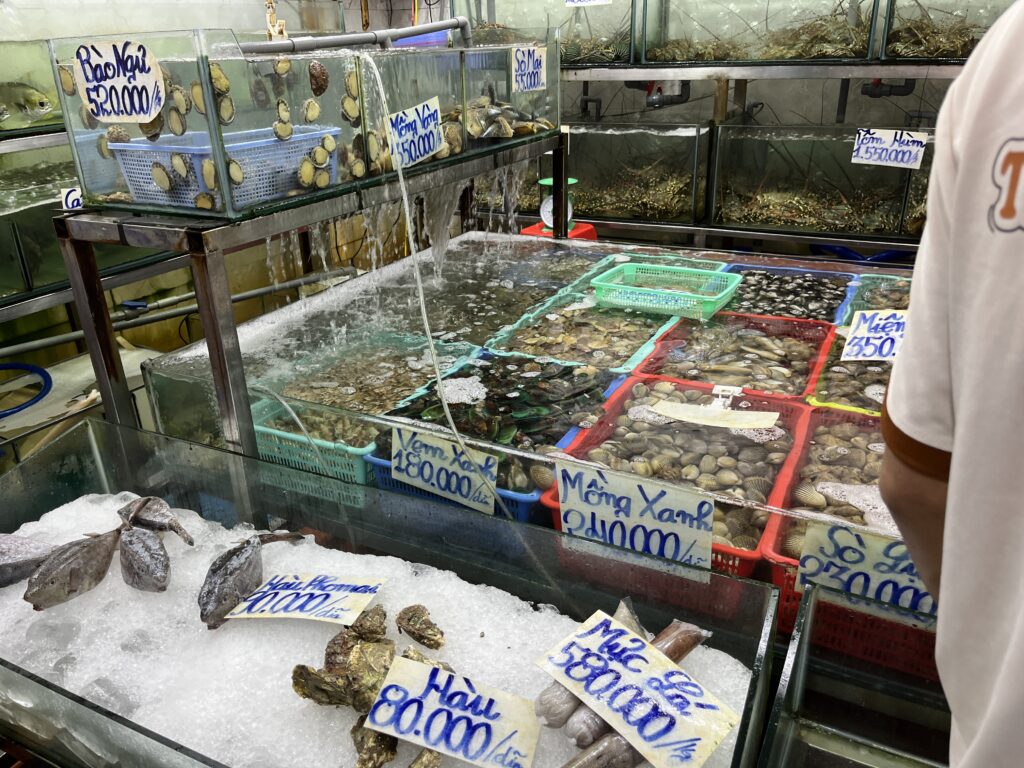 夕方はビーチ沿いのバーで海を見ながらフリータイム、今日の夕食は人気の海鮮料理です